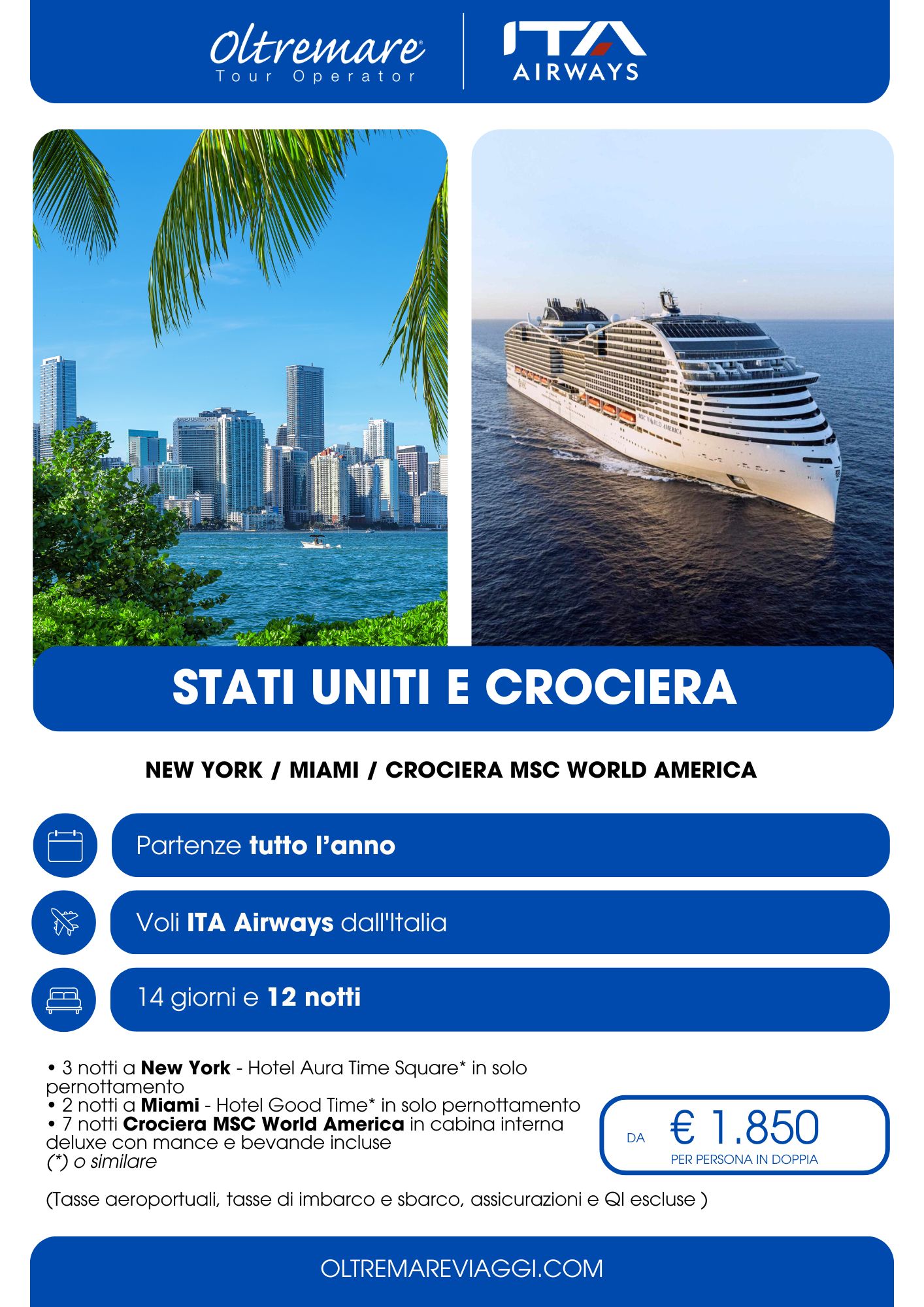 In realtà NYC è solo una dei richiami della costa est degli States. Con Washington, la capitale e luogo iconico nella storia degli Stati Uniti come Philadelphia e Boston, e la natura, dalle spettacolari Cascate del Niagara e il New England con la sua costa dal fascino senza eguali, luogo di partenza per l’avvistamento delle balene. Che sia un tour condiviso con guida in italiano o piuttosto un fly & drive, l'avventura è infinita. Fino a laggiù in fondo nella punta estrema della Florida, dove l’estate sembra perenne e ci attendono Disneyworld, le spiagge e la nightlife di Miami Beach. Da dove si vola agevolmente verso i Caraibi, ma questa è tutta un’altra storia!